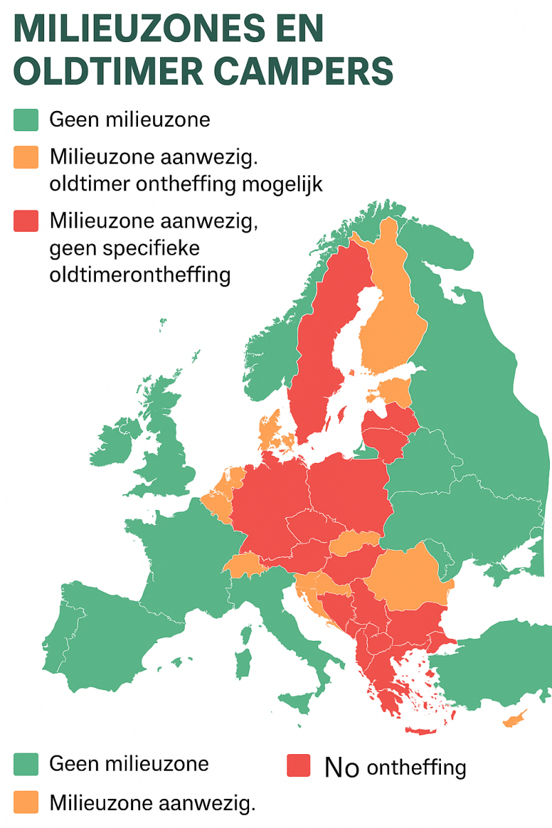 Maar zodra je Europa doorkruist, stuit je op een praktische uitdaging: milieuzones. Steeds meer steden en landen voeren regels in om de luchtvervuiling terug te dringen, en oudere voertuigen, zoals campers uit de jaren ’60 en ’70, vallen vaak buiten de toegestane normen. Voor veel reizigers klinkt dat als slecht nieuws. Betekent dit dat je klassieke camper thuis moet blijven? Zeker niet – er zijn manieren om deze beperkingen te omzeilen en toch volop te genieten van je oldtimer avontuur.